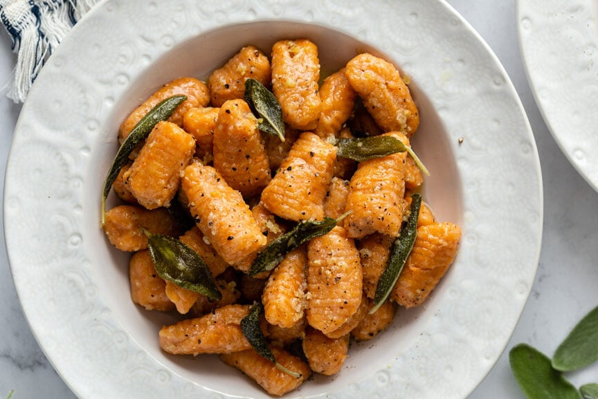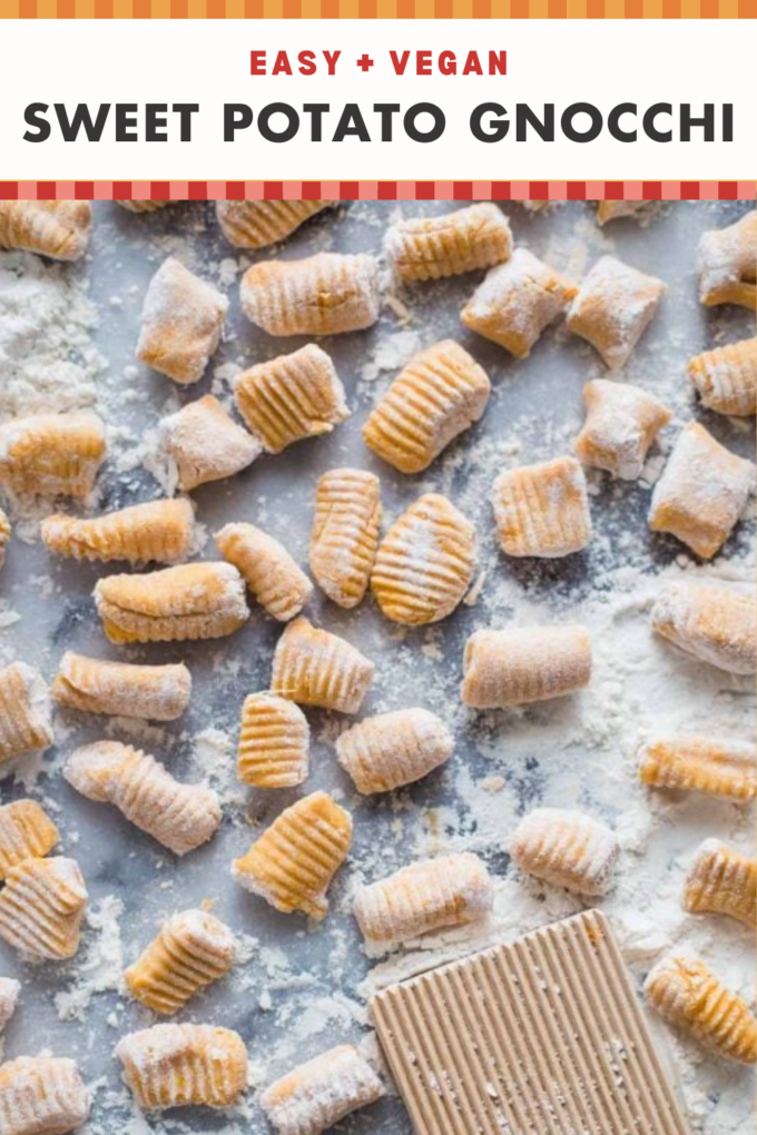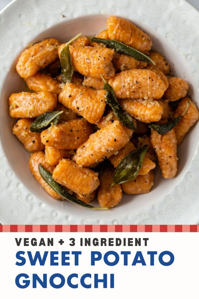 Ohhh man made this recipe and it came out beautifully. I halved it. I used one sweet potato that I roasted earlier in the day then I reheated it in the air fryer and mashed it with a bit of water to rehydrate it when I was ready to use it. After I finished making the gnocchi I stored them in the fridge for a bit and for sauce I used puréed Roma tomatoes roasted with onion garlic oregano a splash of balsamic and chili flakes. Me and my husband are happy and fed! Will definitely be making this again, it’s so cost effective! Thanks for the easy peasy recipe:)