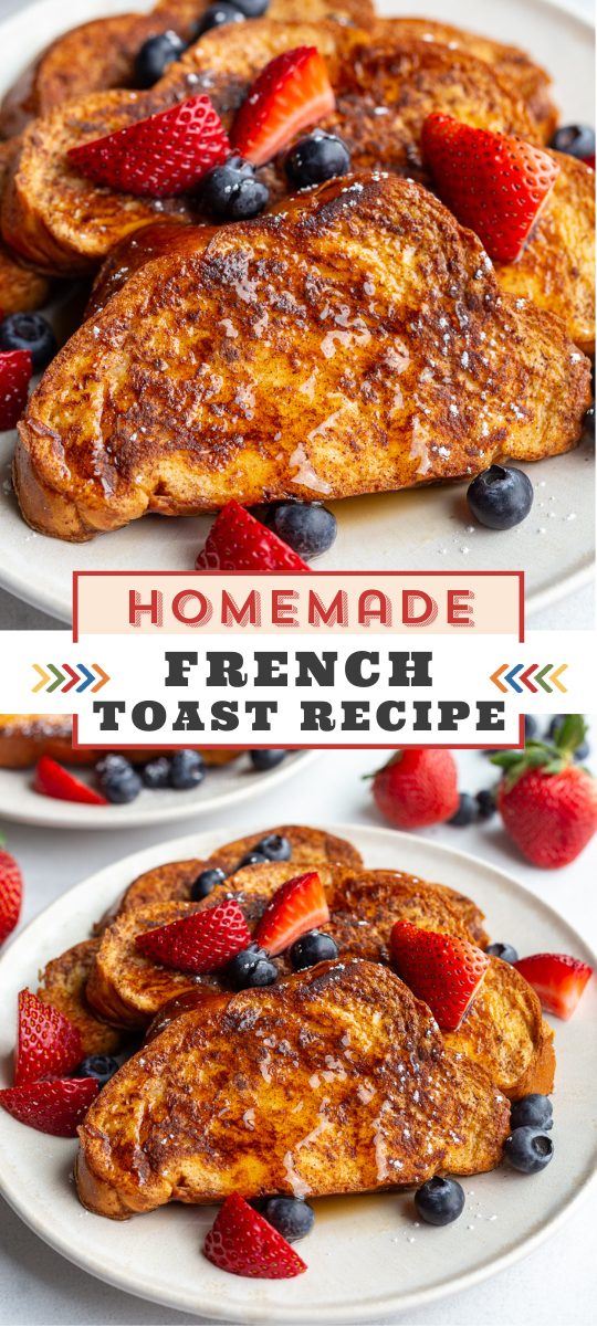 Of ALL the recipes that I have made in my adult life, this homemade French Toast recipe is easily in our top 5! Typically we go with this basic recipe but I’ve made it all: Stuffed French Toast, French Toast Sticks, even more viral Vegan French toast! Needless to say, we’re a big french toast family :)