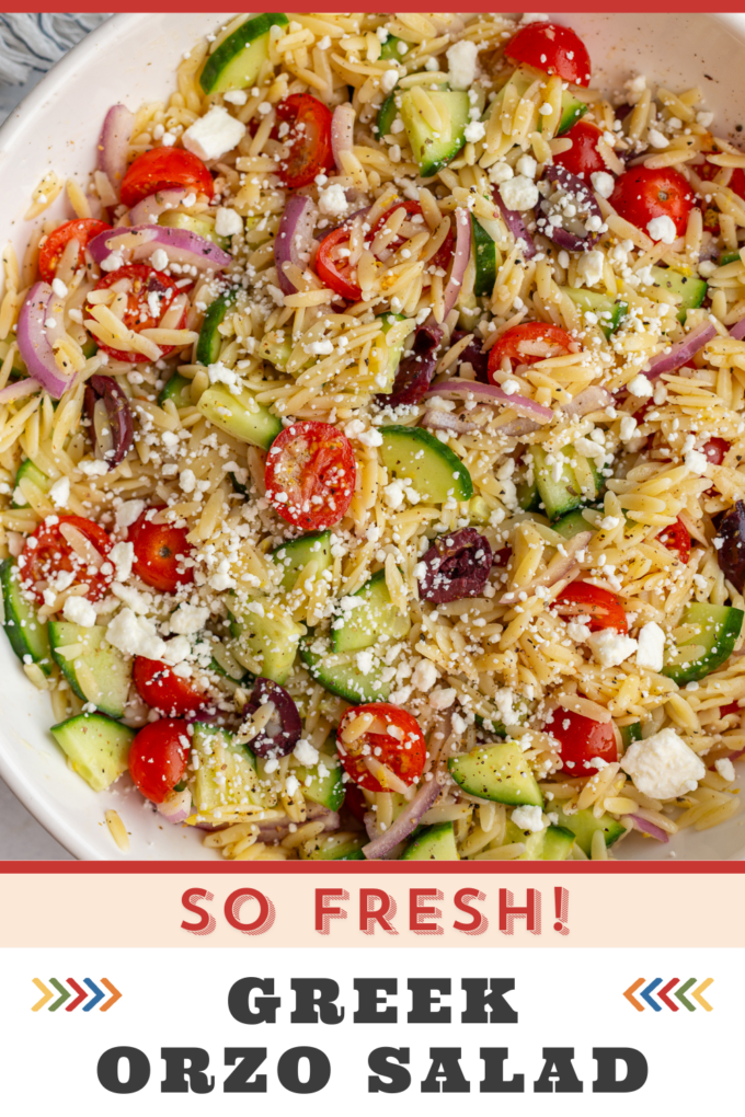 - Toss the orzo with dressing while it’s still slightly warm so it absorbs more flavor.