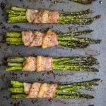 Roast in the oven for 15-22 minutes or until your bacon is nicely cooked (it won't be very crispy at all). Once out of the oven, I recommend placing the bundles on a paper towel lined plate to absorb some of the excess grease.