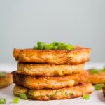 Using a cookie scoop (about a heaping tablespoon), pour the batter into the skillet and lightly pat down the batter to flatten a bit. Cook for 3-4 minutes on each side until golden brown.