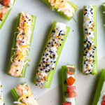 Divide the whipped cottage cheese evenly among the celery and sprinkle on everything but the bagel seasoning. ENJOY!