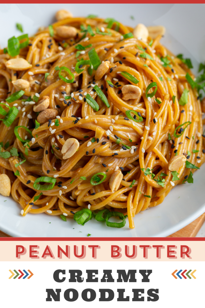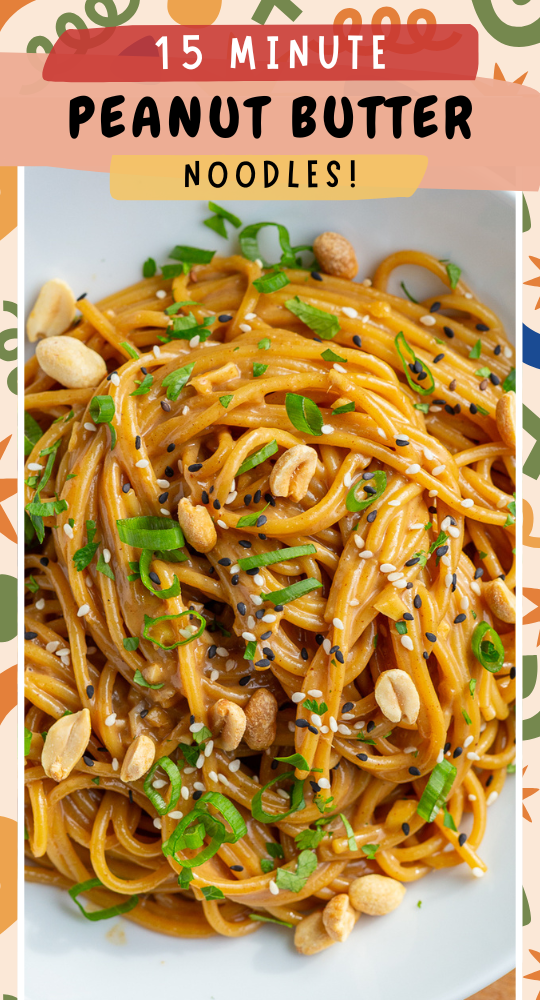 These Easy Peanut Noodles are tossed in a creamy peanut butter sauce with garlic, ginger, and soy sauce for a fast, satisfying meal. They come together in about 15 minutes using simple pantry ingredients and are easy to make vegetarian or vegan!