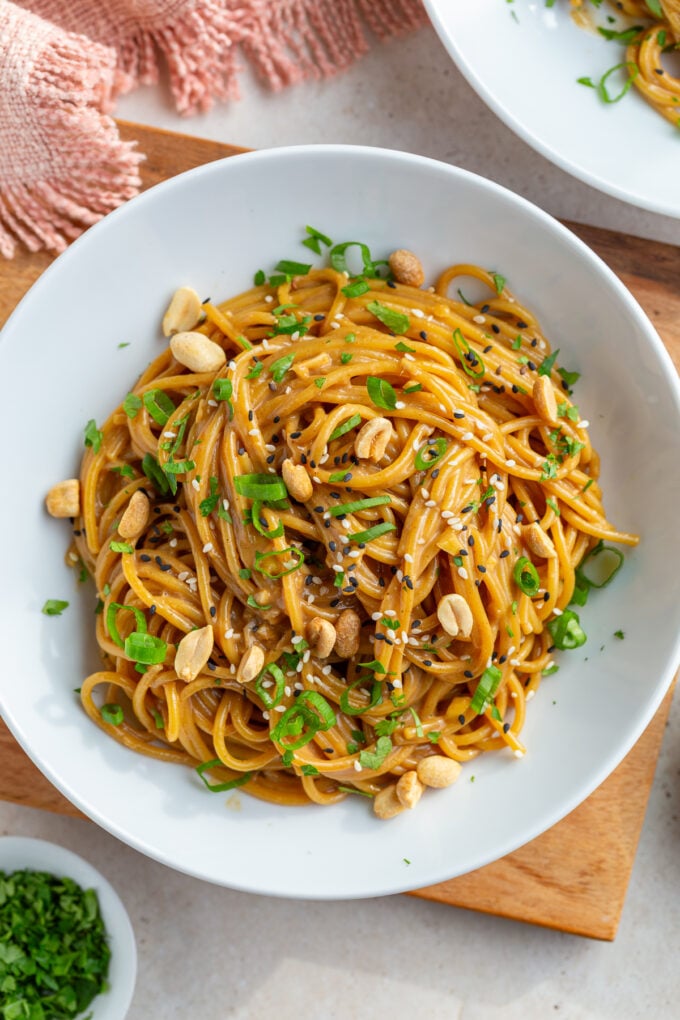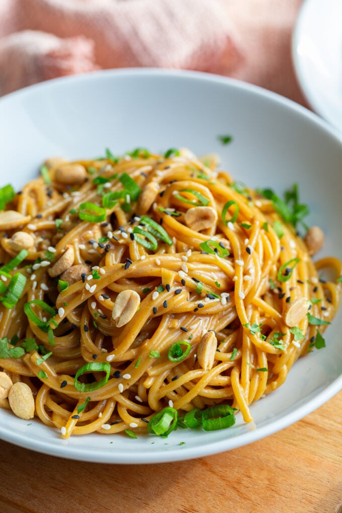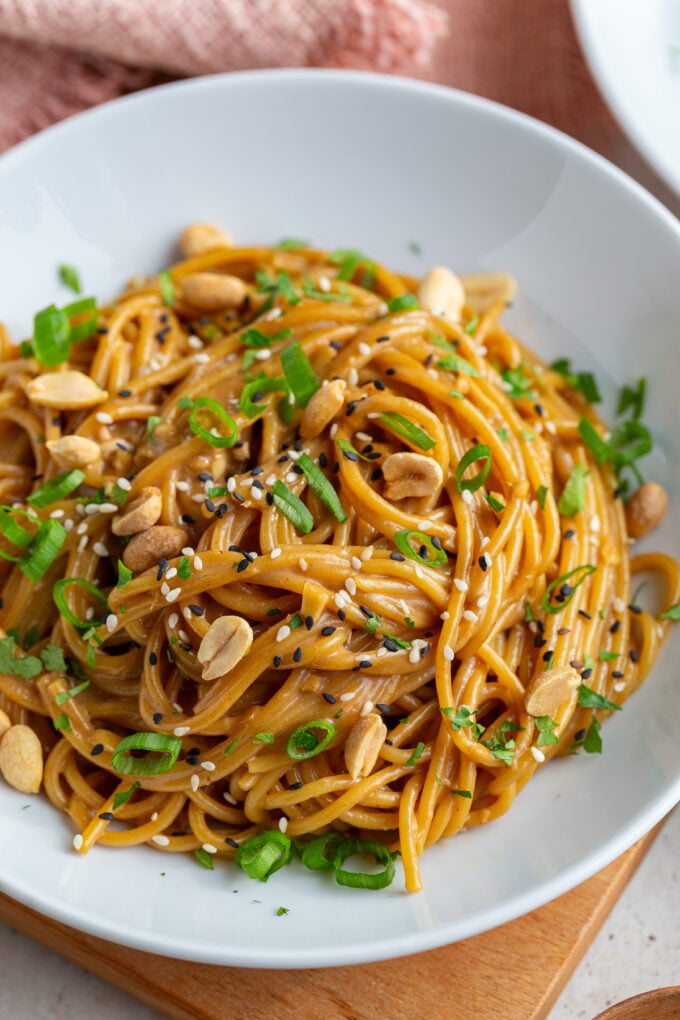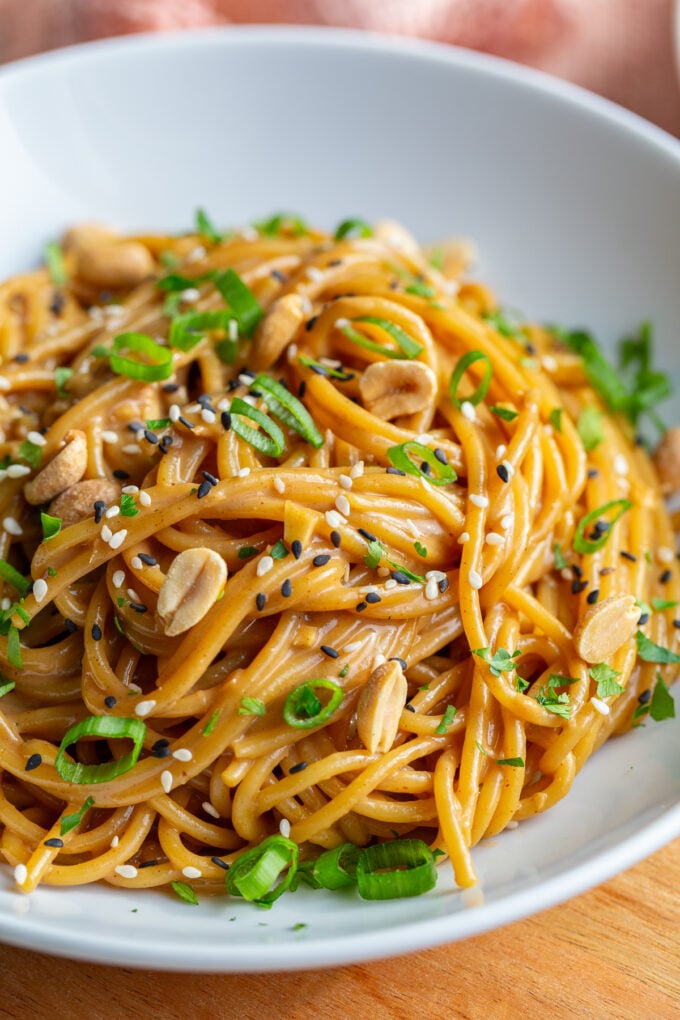 - Toss the noodles while they’re still hot so the peanut butter melts smoothly into a silky sauce.