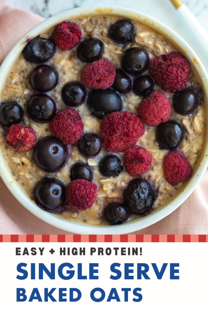 This Single Serve Protein Baked Oats is perfect for quick and easy breakfasts when you want to get a little extra protein into your day! I like to pop it in the oven while I’m working out at home and then it’s baked and cooled just in time for me to be ready to enjoy it!