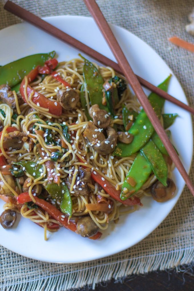 Comfort noodles loaded with veggies makes it all a little better too. Oh and are these noodles DELICIOUS!! Possibly the best Lo Mein I’ve ever eaten AND it was super easy to make. <<<<<the best kind of dinner.