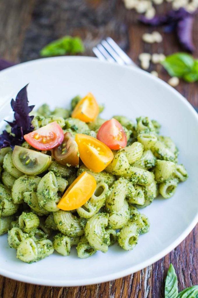 - 1 serving of basil pesto, about 1- 1 1/2 cups (HERE is my recipe for vegan pesto ...I simply swapped out the beet greens for basil in a 1:1 swap). If using store bought or another recipe, you'll want ~1-1 1/2 cups of pesto